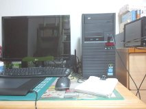 PC,デスクトップ、ペンタブ、外付けHD、ラフ用の裏紙です。